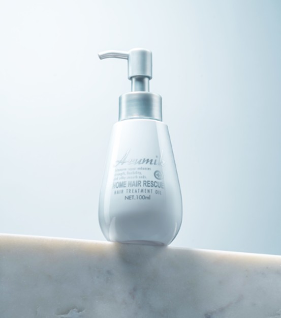- 取適量護髮油於手心抹開,均勻塗抹於髮尾受損處。